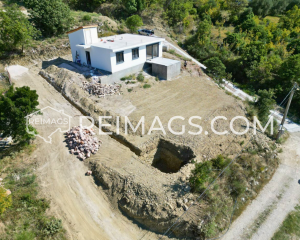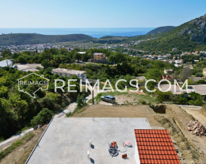 House in Sutomore with a great sea view and a large plot, in a quiet area, is currently under construction. You have the option to customize it with your own design. It is a modern new standard with under floor heating and a special new technology ceiling with styrofoam for more insulation and soundproofing. It already has two bedrooms, a main room with living room and terrace, a bathroom and a small guest bathroom. This house is already in the legalization process. You have the possibility to build another floor, this is also foreseen by the owner according to the project. the fittings are in place so that the next floor can be built directly or you can use it as a 100m² terrace. The plot has 900m2. You have your own water, but it doesn't work in summer, so there is a 6m3 cistern under the terrace. Electricity is already available at the house.