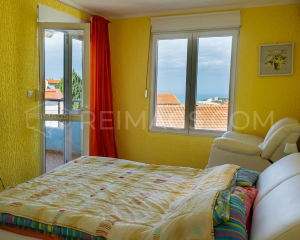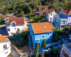 This is a large three storey house in Utjeha the distribution of the house is as follows. On the ground floor there is a sauna, a bathroom and a technical room. On the second and third floors there is a spacious living room with a kitchen and a dining room, four bedrooms, two bathrooms, a terrace overlooking the sea and the mountains. The house is fully furnished and ready to move into, around the house there is a garden with trees and lots of green space. The property is surrounded by a fence, which is an advantage if you want to have animals.