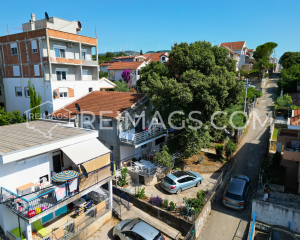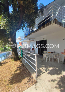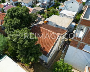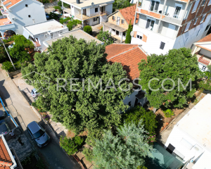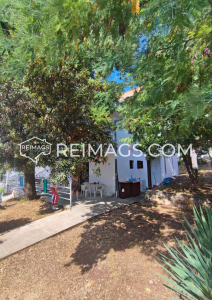 Semi-detached house in Utjeha with a small garden. Not far from the beach, around the house there are cottages. There is a big old tree in front of the building and there is parking for two cars.