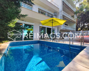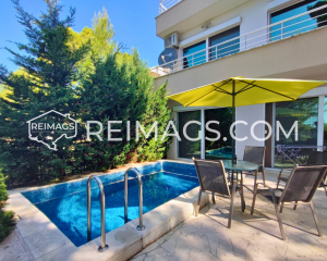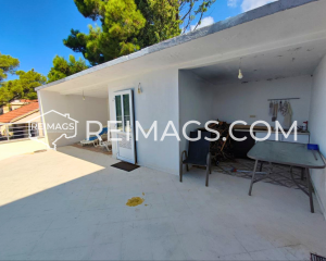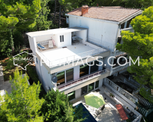 Haus in Zeleni Pojas mit Meerblick. In diesem Haus haben sie im Sommer ausreichend Schatten aufgrund der alten großen Kiefern in der Umgebung, sie haben eine angenehme kühle Brise. Sie haben zwei Balkone und eine Terrasse mit Pool und darunter befindet sich eine Garage für ein Auto, Sie haben vor Ihrem Gebäude an der Straße Parkplätze für ein paar weitere Autos. Es ist eine absolut ruhige Straße, da sie nur von wenigen anderen Nachbarn genutzt wird. Die Gegend ist zudem auch sehr ruhig. Das Haus ist in einem guten Zustand, aber Sie können einige kleine stellen neu Anstreichen. Sie verfügen über eine Stadtkanalisation und ein Wasserreservoir von 12 m³ und können für 1800 € auch an Stadtwasser angeschlossen werden.