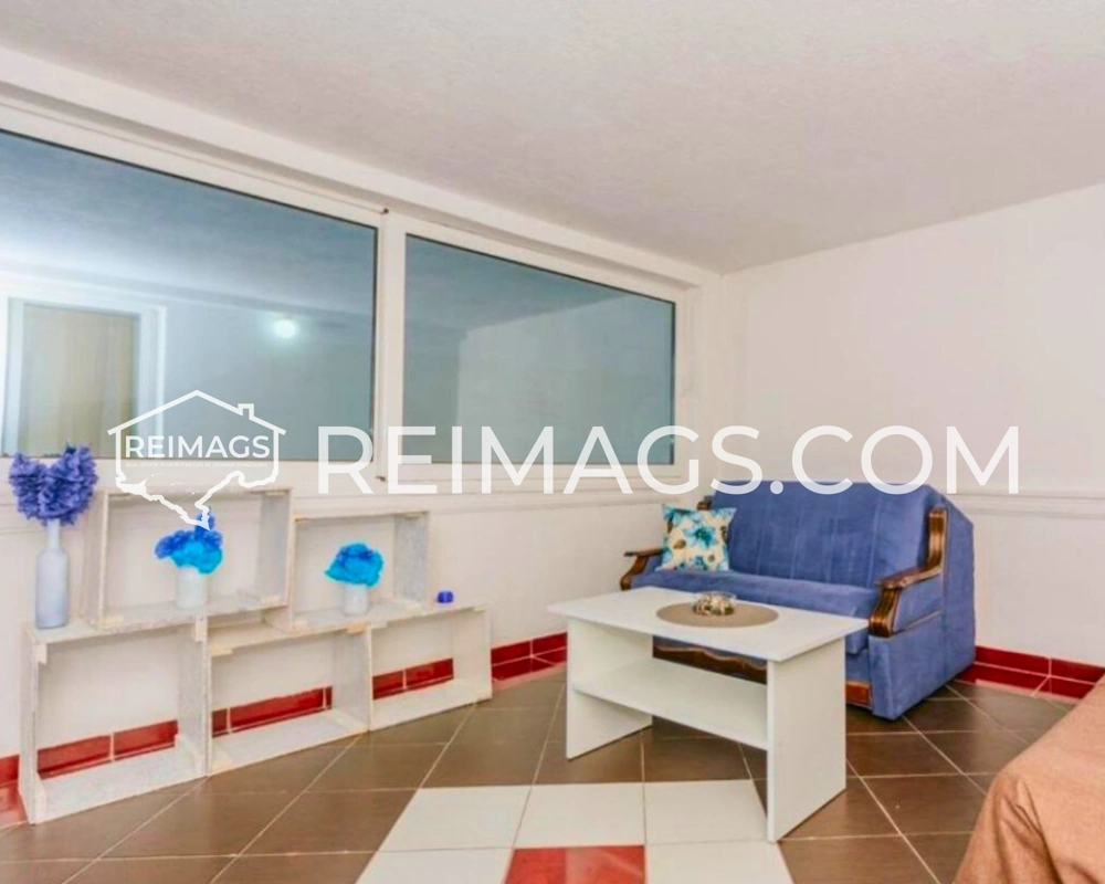 Im dritten Stock befindet sich eine Wohnung mit einem Wohnzimmer mit Esszimmer und Küche, zwei Schlafzimmern, einem Badezimmer und einer Terrasse mit Blick auf das Meer und einem kleinen Garten.